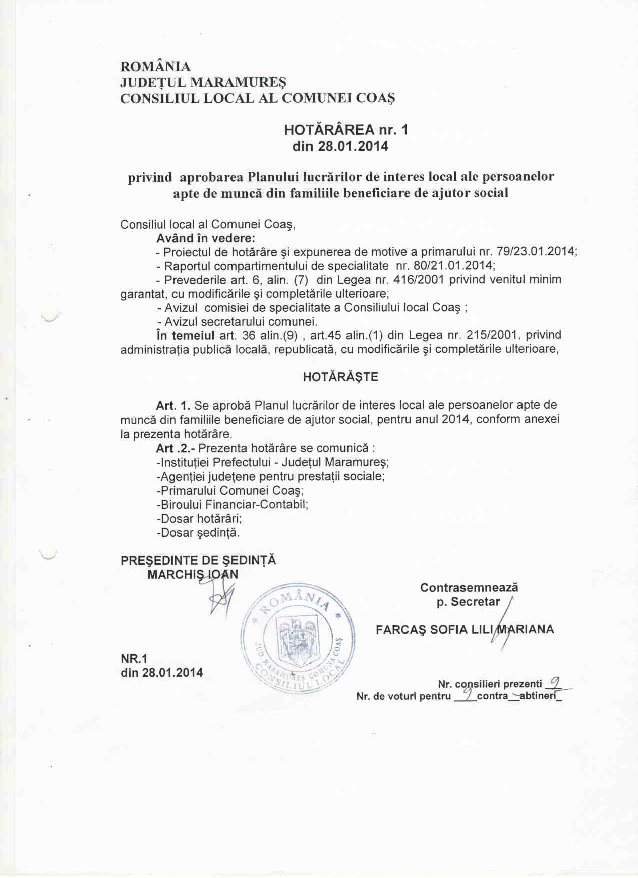 Consiliul Local al comunei COAŞ, judetul Maramures are urmatoarea componenta:
